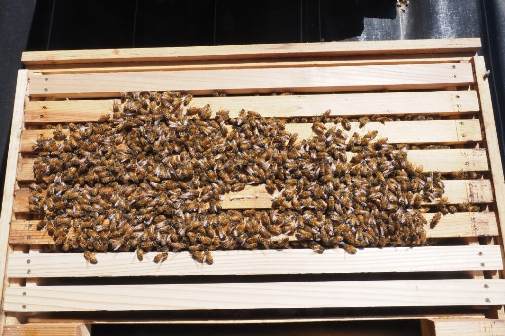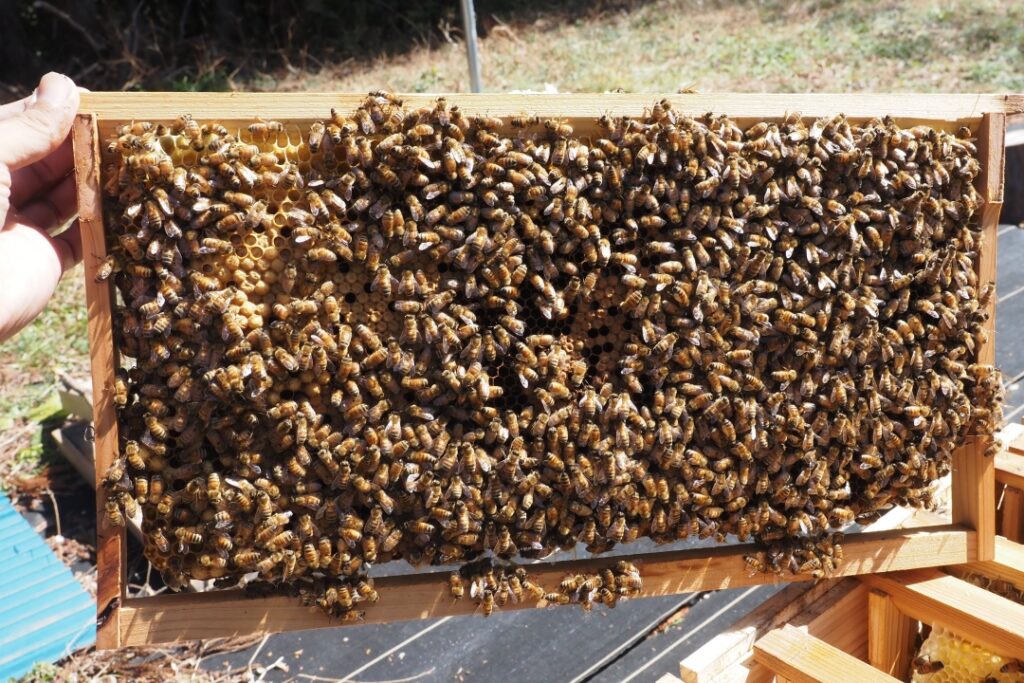 「慣行養蜂であれば凍死して全滅していたであろうこの2群がとりあえず越冬成功に漕ぎつけたのは、化学殺ダニ剤を使わなかったからではないか?」